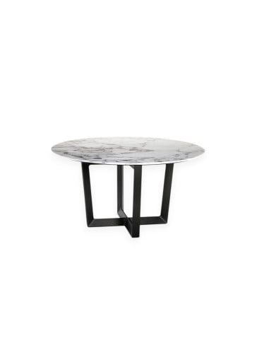Caratteristiche Tecniche: Il tavolo Bolero presenta una struttura portante in legno massello di Noce Canaletto o Frassino con piano in marmo. I sostegni sono collegati al piano tramite distanziatori e piastre di ancoraggio in acciaio verniciato nero. I materiali del piano sono di qualità superiore, come il legno con lavorazione ad intarsio a venature incrociate o varie tonalità e finiture di marmo. Il piano in marmo è rinforzato inferiormente per garantire stabilità e resistenza. Per la versione Ø180 è disponibile un piano girevole Lazy Susan come accessorio.