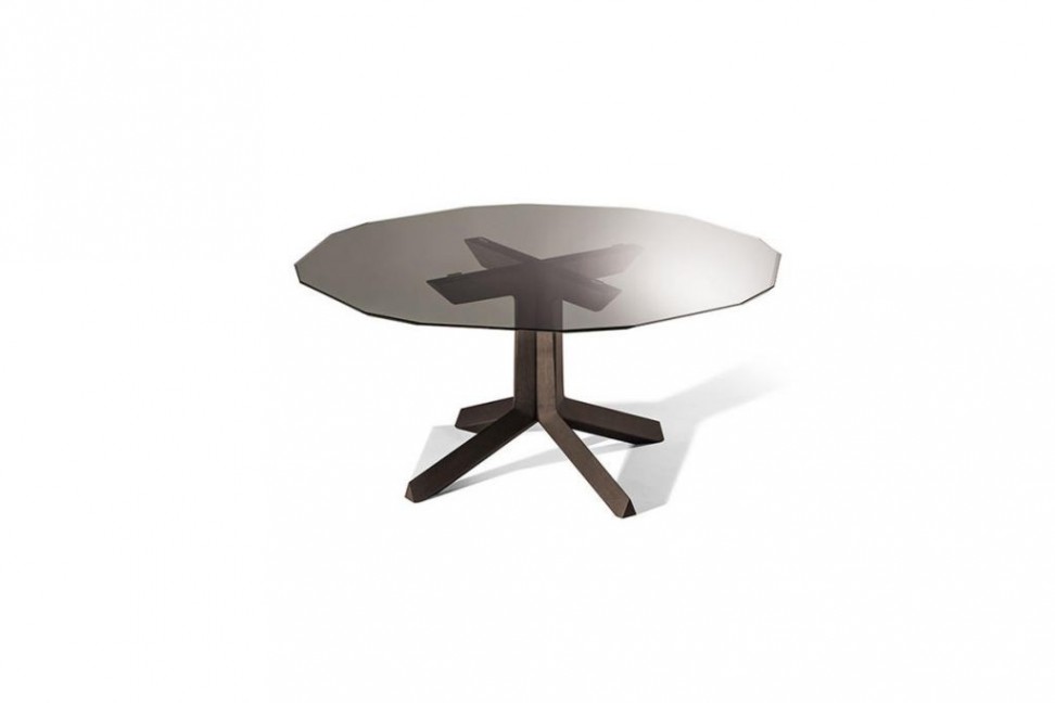 Roberto Lazzeroni ha disegnato questo tavolo ispirandosi al design italiano degli anni '50 e '60, il risultato è un elemento di arredo dallo stile rigoroso e dalle forme decise. Othello nasce per esaltare la bellezza dei materiali naturali come il legno e la pietra rinunciando ad ogni elemento superfluo. Il tratto distintivo dell'intera collezione è la base in legno dalla forte presenza scenica che sostiene il sottile piano, disponibile nella versione tonda o rettangolare. La struttura è realizzata in massello di frassino tinto moka o wengé, mentre per il piano è possibile scegliere fra vetro o marmo.