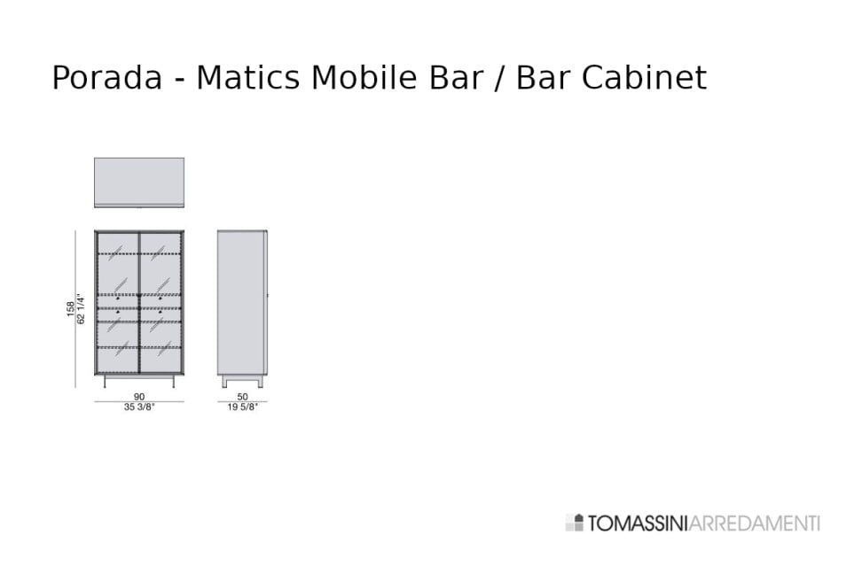 Il mobile bar Matics è disponibile nelle seguenti dimensioni: cm.90x50x158h.