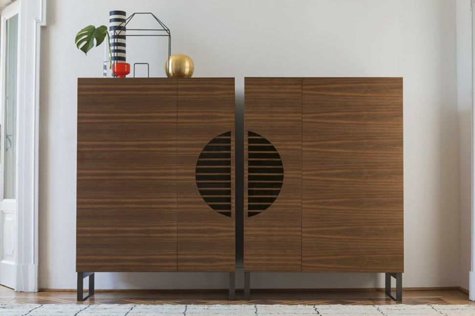 Porada collabora con la designer Giovanna Azzarello per proporre Polifemo, mobile bar disponibile in due versioni speculari.
