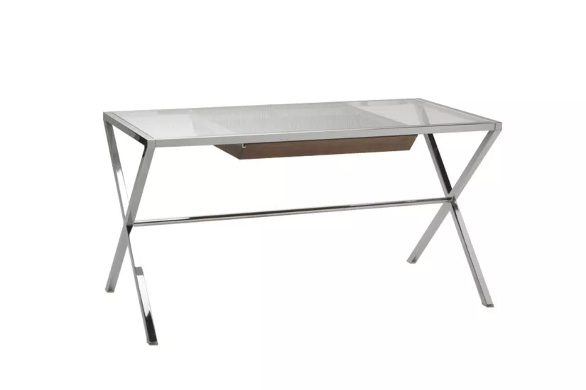 Lo scrittoio Stylo prodotto da Porada è realizzato con una struttura in metallo e il piano in cristallo temperato. E’ disponibile in varie misure.