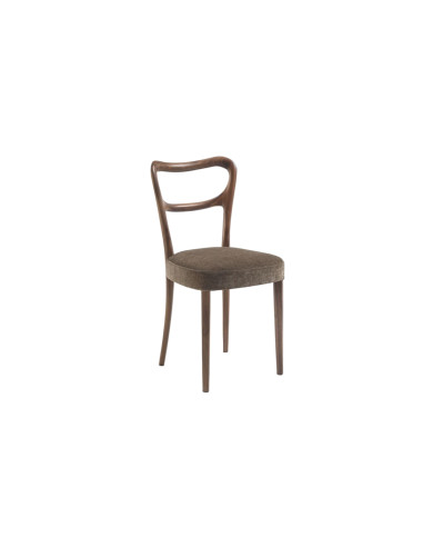 La sedia Noemi presenta la struttura e lo schienale in massello di noce canaletta, disponibili nelle finiture naturale, tinto moka e tinto wengé, sono accompagnati dalla seduta imbottita, rivestibile con la vasta gamma di tessuti e pelli Porada.