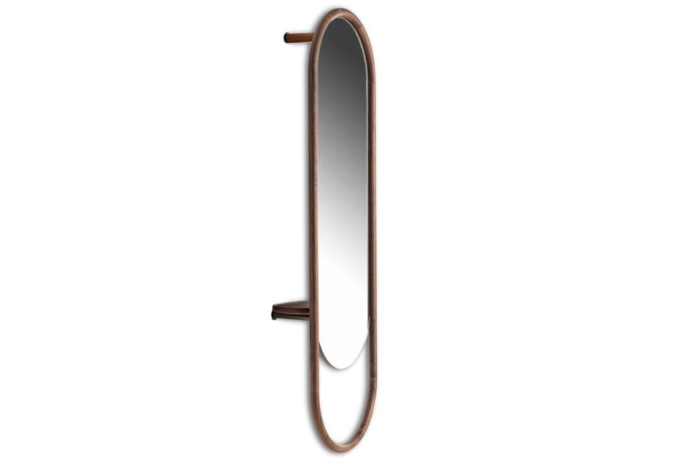 Nel mondo dell'arredamento di lusso, sono poche le opere che riescono ad unire con tale maestria l'eleganza senza tempo e la praticità moderna come lo specchio Backstage. Questa straordinaria creazione, frutto del talento del rinomato duo di designer Nava&Arosio per la prestigiosa casa di design italiana Porada, costituisce il fulcro di raffinatezza. Il cuore di tale capolavoro è lo specchio da parete: una superficie riflettente dalla cristallina purezza che cattura la luce dell'ambiente circostante, diffondendola attraverso gli spazi con una grazia insuperabile. Tuttavia, lo specchio Backstage trascende il suo aspetto estetico, poiché ingegnosamente integra elementi funzionali che lo trasformano in un oggetto di desiderio per qualsiasi contesto. La cornice che incornicia lo specchio è lavorata con abilità dal massello di noce canaletta, una scelta di materiale che conferisce allo specchio Backstage - Porada una calda eleganza e una solidità intramontabile. La maestria artigianale emerge in questa cornice, modellata con cura dai maestri ebanisti di Porada, trasformando il legno in un elemento di design puro ed esclusivo.