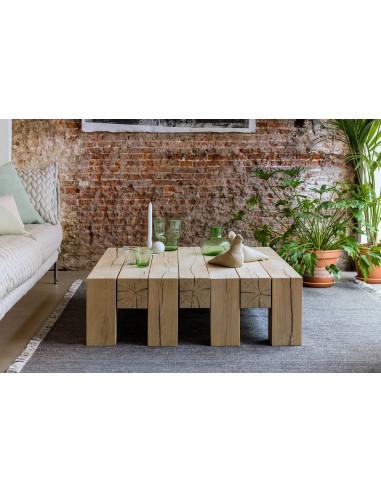 QLiv realizza questo tavolino in legno di rovere francese, in tre diverse dimensioni cm 125x72x32h, cm 125x57,5x32h o cm 125x43x32h.