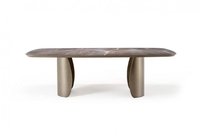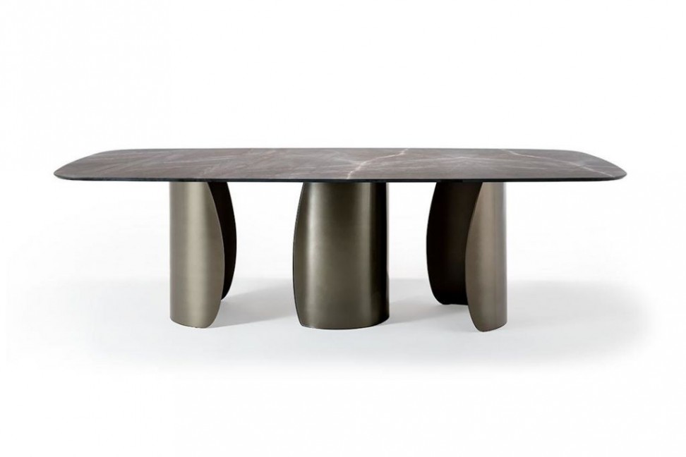 Il tavolo Petalo 72 nasce dal progetto del designer Tulczinsky per il marchio Made in Italy Reflex Angelo. Questo tavolo da pranzo è dotato di due basi in vetro extra-chiaro curvato, con spessore 10mm, caratterizzato da una verniciatura interna Bronze. Il piano è proposto in vari materiali e finiture, come vetro trasparente, vetro extra-chiaro, Marmo-Reflex, oppure in Bevel Wood noce Canaletto o Canaletto Henné o in Bevel Vetromarmo. Il tavolo Petalo 72 è disponibile in versione circolare con tre basi, oppure in versione rettangolare con la terza base opzionale.Reflex