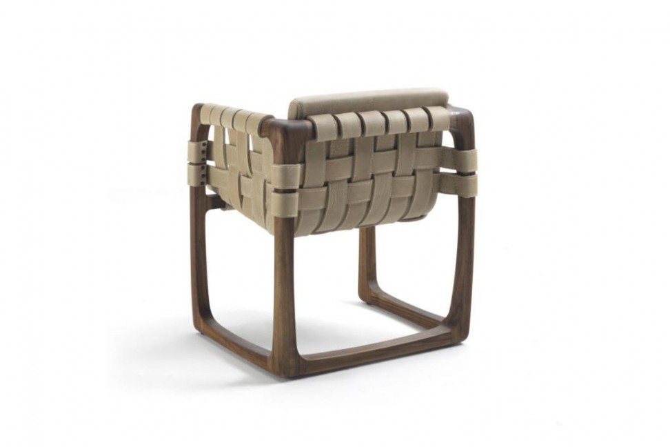 La poltrona Bungalow è disponibile in un'unica dimensione ed è costituita da una base in legno massello in varie finiture e da un intreccio in pelle che sostiene la seduta e lo schienale, il cui comfort è amplificato dalla presenza di morbidi cuscini. La linea comprende anche una sedia, una panca, sgabelli e tavolini.