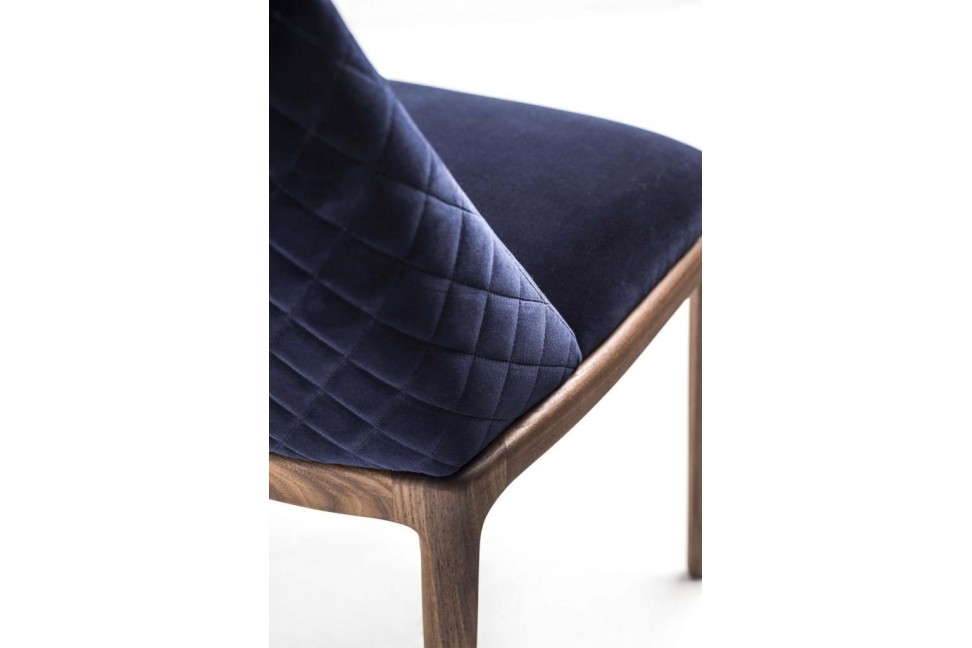 Disponibile in due versioni, con o senza braccioli, la sedia Cloè è caratterizzata da una particolare lavorazione trapuntata che, a scelta, può essere applicata sul retro dello schienale, così da renderla ancor più unica e personale.