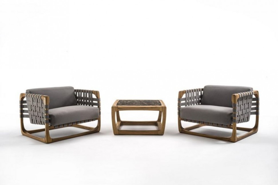 Disponibile in un'unica dimensione, Bungalow è composto da una struttura in legno massello di teak, assemblata e levigata a mano, che abbraccia e sostiene il piano in marmo Emperador lucido.
