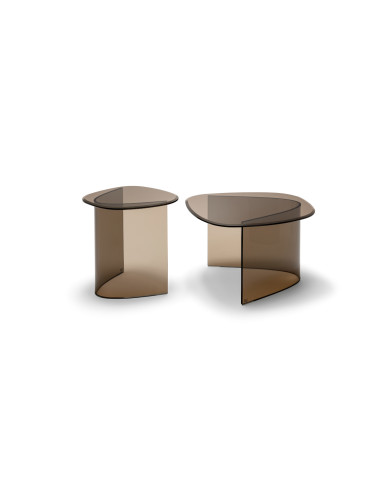 Per Rolf Benz, Herkner combina nel design del tavolino Onno linee giocose e organiche con l'estetica nitida del vetro monocromatico, creando un oggetto dallo stile elegante e senza tempo. Questo tavolino è disponibile in due schemi di colore che si adattano perfettamente a diversi tipi di interni. Puoi scegliere tra il grigio freddo del vetro fumé o una tonalità di bronzo che conferisce calore agli ambienti. Entrambi i modelli brillano sia come pezzi autonomi che come coppia, ma è inevitabile che il tavolino alto e il tavolino basso interagiscano in armonia. Il design del tavolino crea affascinanti giochi di colore che danno vita a un look monocromatico dal fascino sfaccettato. La luce, l'ombra e la profondità si mescolano in un modo unico, conferendo al tavolino una presenza magnetica e un aspetto accattivante.