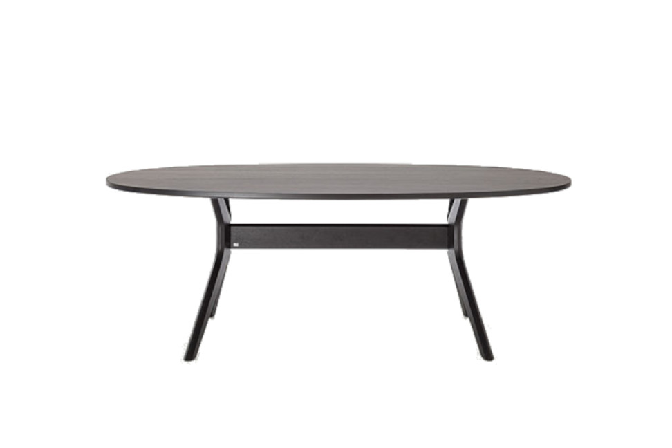 Il piano e la struttura sono realizzati in rovere chiaro, rovere scuro o noce. Questo tavolo si abbina perfettamente con le nuove sedie 950 di Rolf Benz.