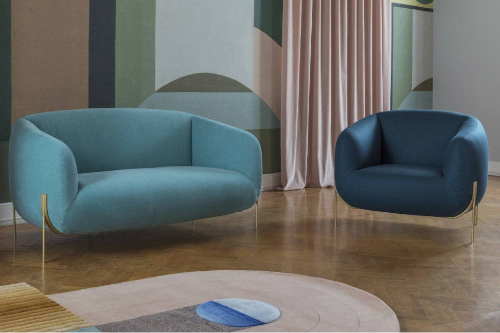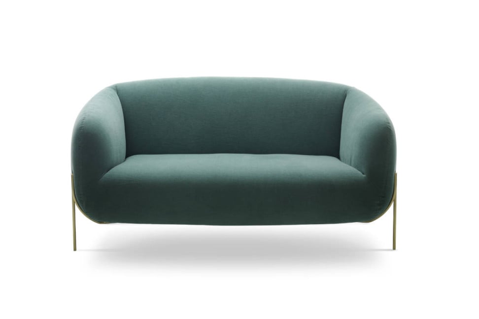 Grazie ai volumi abbondanti e forme morbide e avvolgenti dello schienale e dei braccioli, che si contrappongono alla leggerezza dei piedini, il divanetto Geo gioca sull'equilibrio dei contrasti, creando una figura armoniosa. Il divanetto Geo è proposto con rivestimento in tessuto o pelle; i piedini metallici sono disponibili con finitura rame lucido, ottone satinato o grigio.