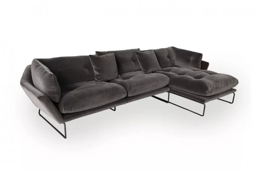 Il divano New York Suite di Saba si distingue per le ampie ed avvolgenti cuscinature trapuntate dal fascino retrò, che conferiscono un volto rigoroso e chic alla zona living. Il divano, disponibile in versione fissa e modulare, presenta una scocca rigida dalla forma esagonale sorretta da eleganti sottili piedini in tondino di acciaio con finitura black nickel, cromo lucido o verniciati color bianco. La struttura interna è costituita da legno massello tamburato rivestito in poliuretano e cinghie elastiche per assicurare il molleggio della seduta e garantire massimo comfort, mentre il rivestimento è realizzabile sia in tessuto che in pelle.