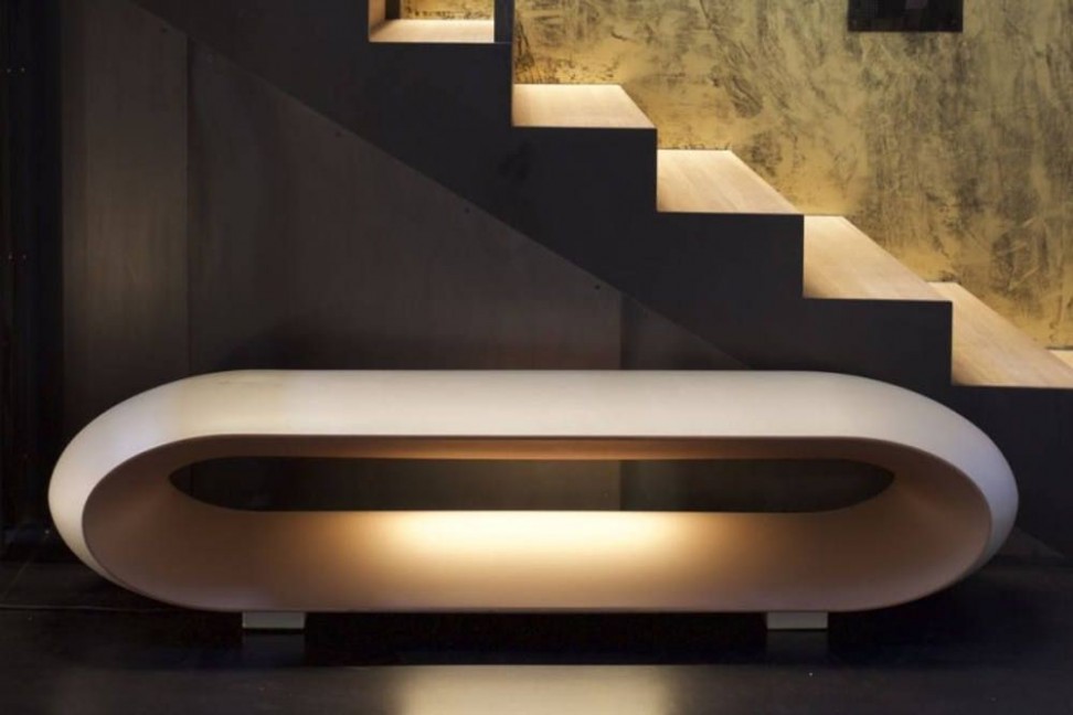 Serralunga realizza la panchina Loop in tante finiture e colori diversi. Completa la collezione la lampada Loop.