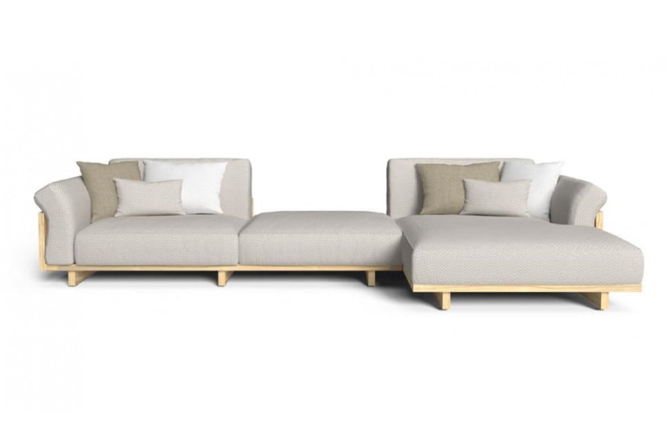 Disegnato dal duo Ludovica+Roberto Palomba, il divano per esterno Argo Wood di Talenti entra a far parte dell'omonima collezione outdoor. Tra i pezzi più rappresentativi della linea, spicca questo divano modulare che consente di personalizzare la disposizione dei moduli in modo estremamente versatile, adattandosi perfettamente a qualsiasi spazio e ambiente. L'estetica minimale del divano Argo Wood si sposa perfettamente con qualsiasi stile di arredamento, non solo per la sua modularità, ma anche per la linea di tessuti outdoor disponibili per il rivestimento che è completamente sfoderabile.
