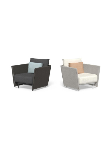 La collezione Coral nasce dalla collaborazione tra Marco Acerbis e l'azienda Talenti. All'interno di questa linea di design si inserisce la poltrona living Coral, il complemento perfetto per completare l'arredo del proprio living esterno. La solida struttura in alluminio rivestita in corda nautica contrasta con l'ampia seduta della poltrona e la sua voluminosa cuscinatura. I materiali utilizzati nella realizzazione di questa seduta sono accuratamente studiati per garantirne la resistenza alle intemperie. La poltrona living Coral è disponibile in due combinazioni di colore: bianco e grigio.