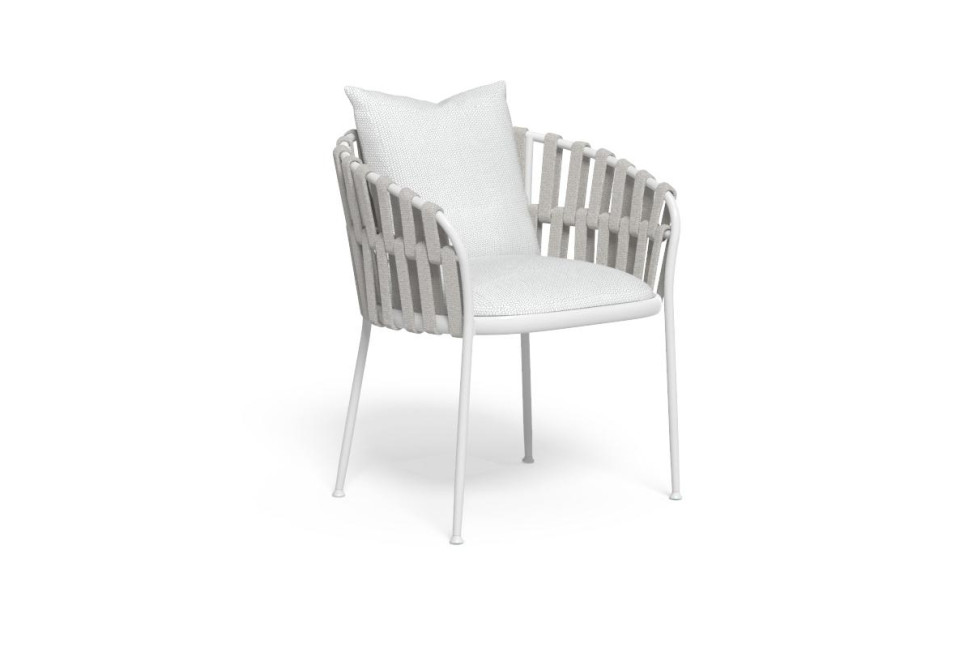 La poltroncina è pensata per essere utilizzata non solo per pranzi all'aperto, ma anche per momenti di relax e conversazione. Può essere posizionata intorno a un tavolo da pranzo per creare un'atmosfera conviviale e accogliente durante i pasti con familiari e amici. Tuttavia, grazie alla sua estetica sofisticata, la poltroncina può essere utilizzata anche come elemento decorativo indipendente, aggiungendo un tocco di stile a qualsiasi angolo del tuo spazio esterno.