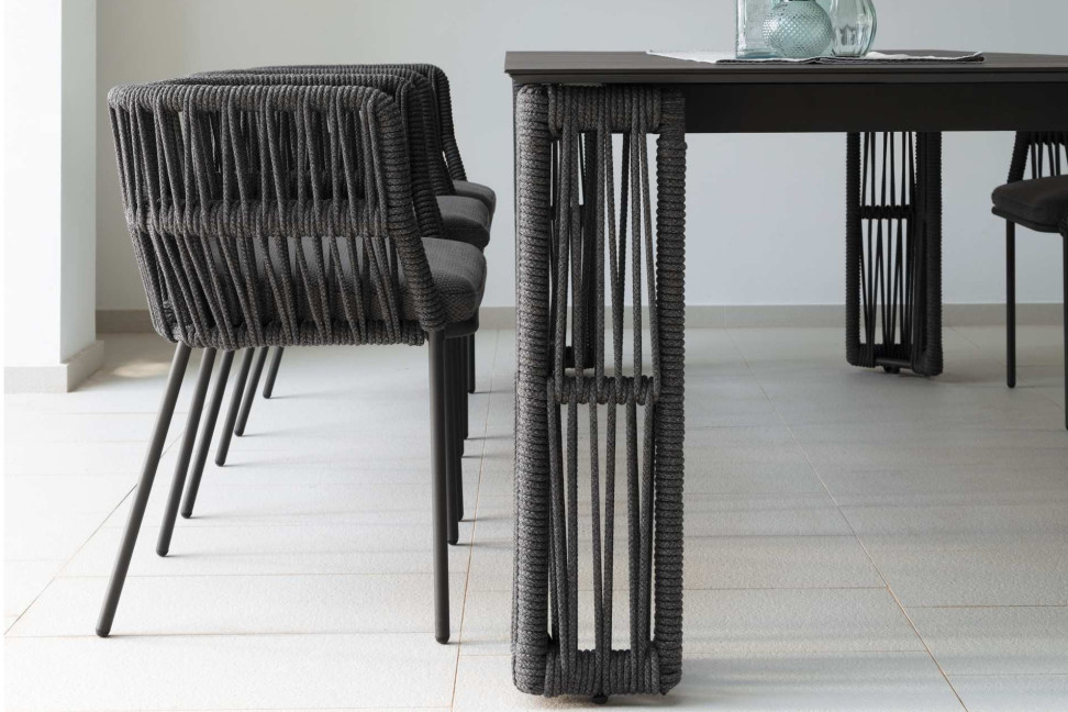 Realizzata con materiali di alta qualità, la poltroncina per esterno Cliff di Talenti è progettata per resistere alle intemperie e durare nel tempo. La struttura in alluminio verniciato è robusta e leggera allo stesso tempo, mentre il sedile e lo schienale sono realizzati in tessuto sintetico resistente all'acqua e ai raggi UV, disponibile in tre diverse combinazioni di colore. Questo capolavoro di design e comfort è caratterizzato da linee pulite e forme sinuose. Elemento distintivo della poltroncina è l'intreccio di corde che avvolge la seduta. Questo particolare intreccio conferisce alla seggiola un'eleganza e una complessità uniche, che mettono in risalto la bellezza di qualsiasi spazio esterno in cui essa venga collocata.