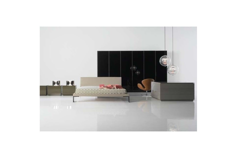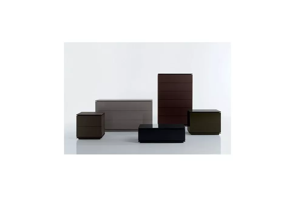Scape comprende un intero gruppo notte, in legno con maniglie ricavate nello spessore frontale del cassetto.