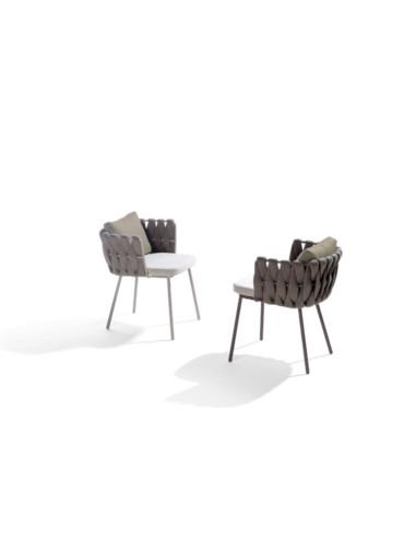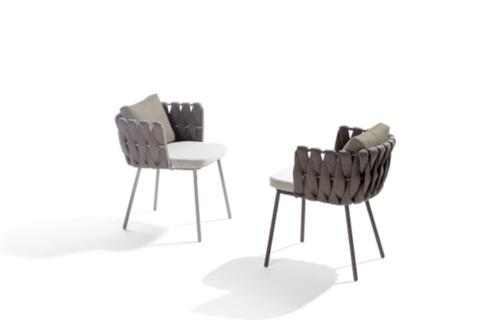 Ideata da Monica Armani e prodotta da Tribu, azienda belga nella produzione di arredamento di design da esterno, la sedia Tosca è caratterizzata da forme arrotondate, gambe affusolate e un elegante guscio di seduta in acciaio inox verniciato a polvere, rivestiti in una treccia originale.