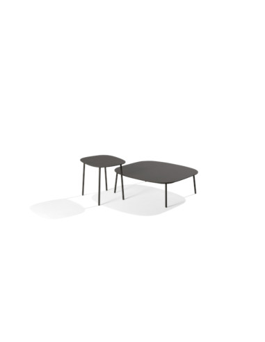 La designer ha creato un tavolino ed un tavolo da parete più alto, entrambi con le stesse gambe slanciate ed affusolate ed un piano dall’originale forma ovale. Tribu realizza il piano del tavolo con uno splendido motivo plumbeo su una lamina di ceramica, ideale per l’esterno,poiché estremamente resistente alle macchie, i graffi, il gelo, i raggi ultravioletti e richiede una minima manutenzione.