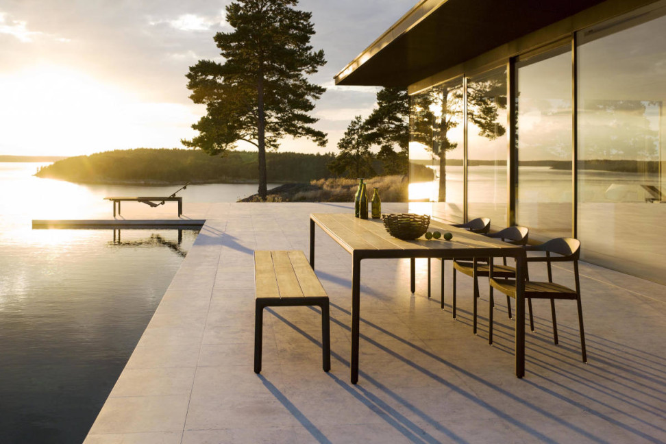 Il tavolo Illum ideato dai designers Merckx & Maes, è presentato del brand Tribù, azienda leader nell'arredamento outdoor di design.