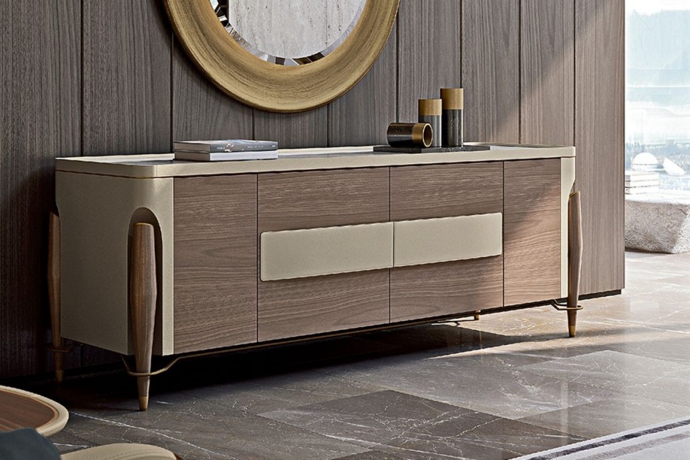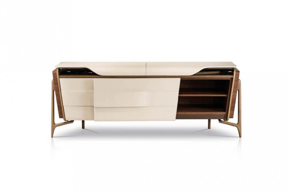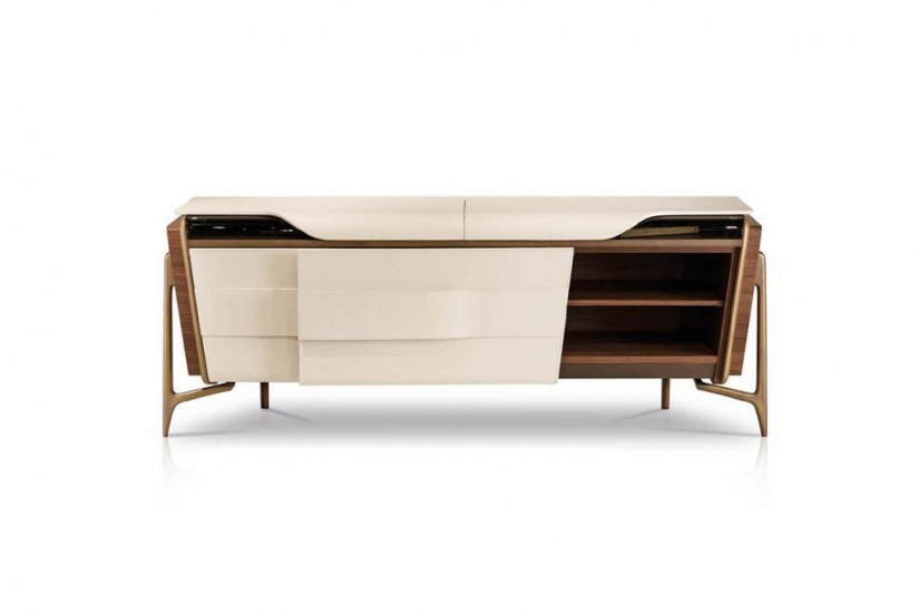 Le credenze della collezione Melting Light sono disegnate da Frank Jiang per il brand made in Italy Turri e sono disponibili in due modelli: con ante frontali scorrevoli e con 4 ante a battente.