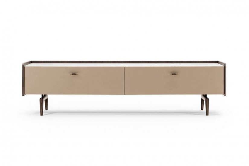 Il mobile tv Blues, fa parte della nuova collezione 2021 di Turri. Con una struttura in legno estremamente elegante, il mobile tv Blues è pensato per soddisfare diverse esigenze. I frontali dei due cassettoni possono essere realizzati in legno essenza, pelle oppure legno laccato lucido. Il top a sua volta può essere personalizzato in legno essenza, pelle o in prezioso marmo.Turri