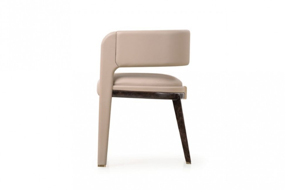 La sedia Eclipse, disegnata da Andrea Bonini per Turri, presenta uno stile moderno ed intrigante. Questa sedia gioca con i contrasti tra la pelle o il tessuto che rivestono seduta, schienale e gambe anteriori ed il legno delle gambe posteriori. A completare il tutto ci pensano i dettagli in oro chiaro tipici della collezione.