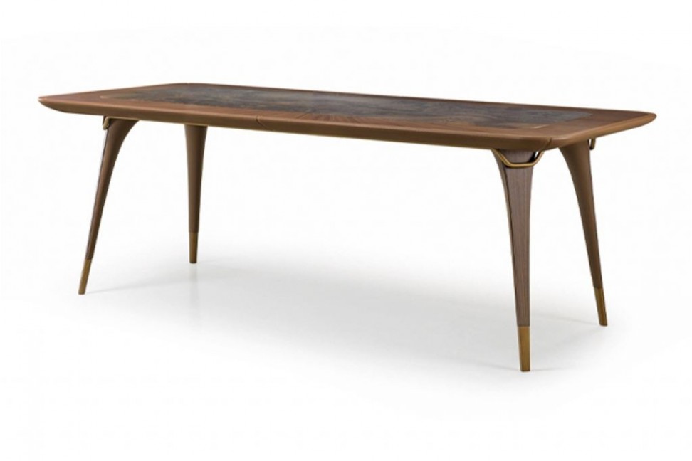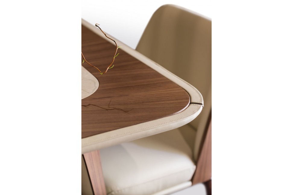 La linea Melting Light nasce dalla collaborazione fra Turri ed il designer Frank Jiang. Il tavolo appartenente alla collezione ne presenta l'elemento caratterizzante, ovvero il dettaglio metallico tubolare che percorre il profilo del top, disponibile sia interamente in legno che con inserto in marmo. Lo stile elegante del tavolo Melting Light è completato dalle gambe affusolate con dettagli in metallo e dagli inserti in pelle del top.Turri