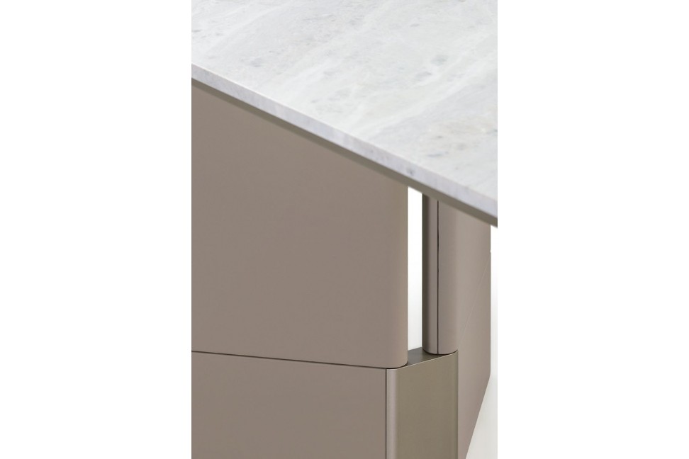 Il tavolo della collezione Zero, disegnata da Andrea Bonini per Turri, è caratterizzato dalla sua base scultorea, che prende forma dall'intersezione di due ali rivestite in pelle. Le gambe sorreggono l'elegante top, disponibile sia in marmo che in legno laccato lucido. Il tavolo Zero è disponibile in una versione rettangolare e in due versioni rotonde.Turri