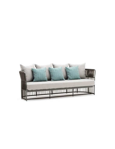 Caratteristiche Tecniche: Divano con intelaiatura in alluminio verniciato a polveri con rivestimento in fibra sintetica intrecciata; piedini in polipropilene.