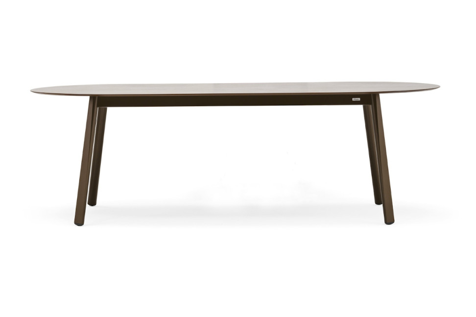 Il tavolo outdoor Emma di Varaschin, disegnato dalla designer Monica Armani, è caratterizzato da linee dolci e raffinate, che danno vita a un tavolo ampio, ideale per momenti conviviali. Il robusto piano ellittico è sostenuto da quattro gambe rastremate, un dettaglio che conferisce un'elegante leggerezza all'insieme.