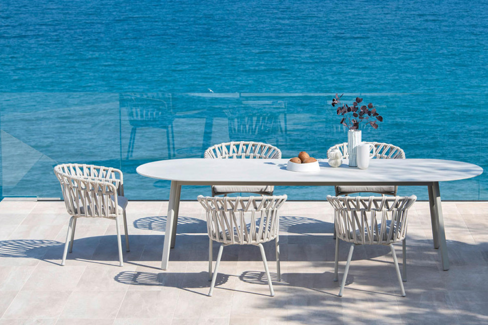 Il tavolo outdoor Emma di Varaschin, ideato dalla designer Monica Armani, con le sue linee delicate è perfetto per coloro che vogliono arredare il proprio giardino con grazia ed eleganza.