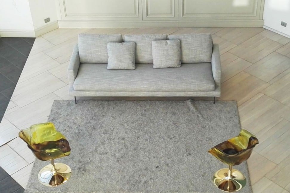 Il divano Larsen, in offerta expo nel nostro showroom, è un complemento d'arredo dallo stile classico ed elegante, con rivestimento in tessuto colore grigio chiaro e piedini in alluminio con finitura bronzo.