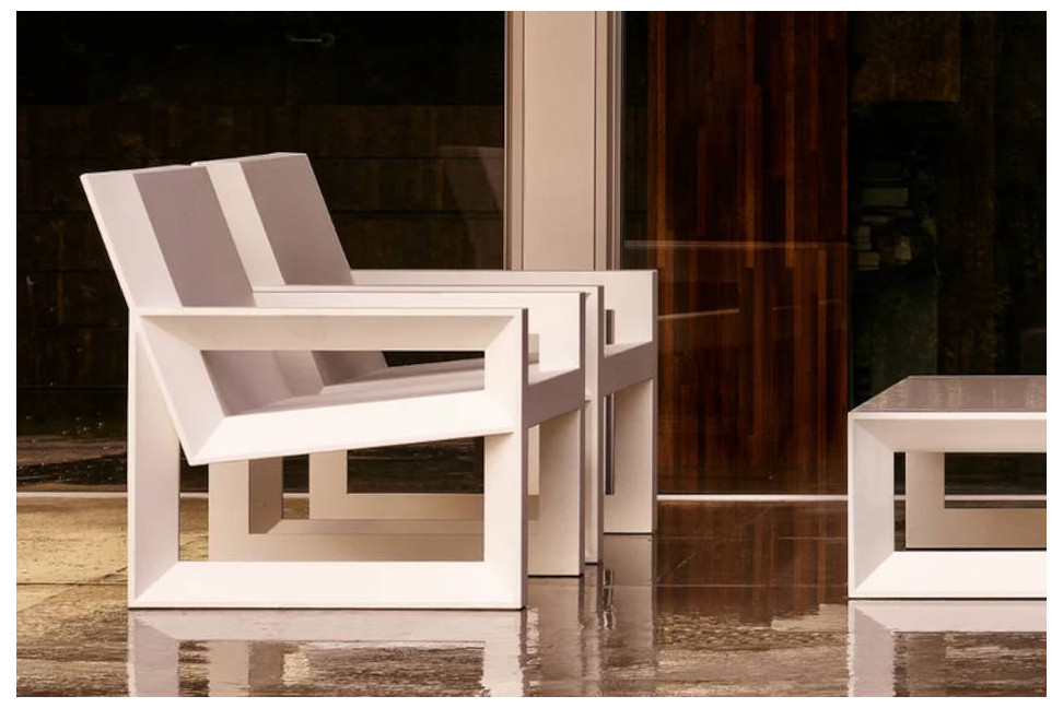 Frame è una poltrona per esterno disegnata da Ramón Esteve e prodotta da Vondom, nota azienda spagnola di arredamenti da esterno. Si presenta con un design contemporaneo caratterizzato da linee rigorose e essenziali.