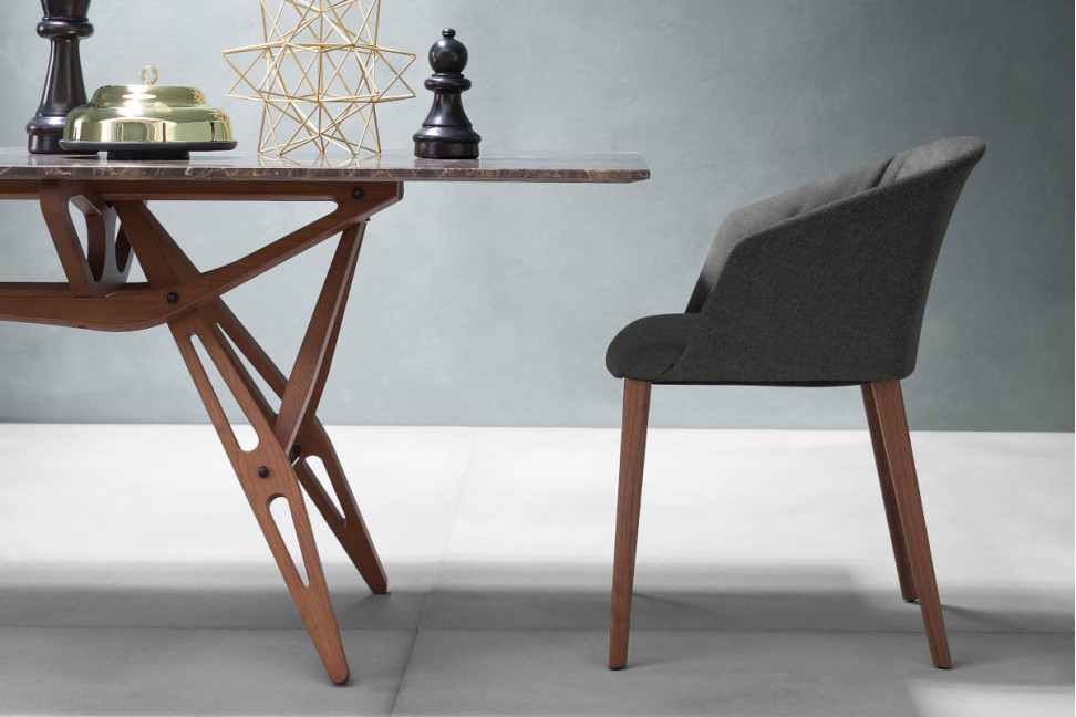 Disegnata dal trio Lievore, Altherr, Molina, la poltroncina Liza 2271 è dotata di gambe in legno massello di rovere o in noce canaletto, entrambi in finitura verniciato naturale. La scocca è imbottita e può essere rivestita in un'ampia gamma di tessuti e pelli. La poltroncina Liza 2271 è proposta anche nella versione 2271/R, con rivestimento schienale sfoderabile in stoffa o pelle accoppiato a Dacron Du Pont.